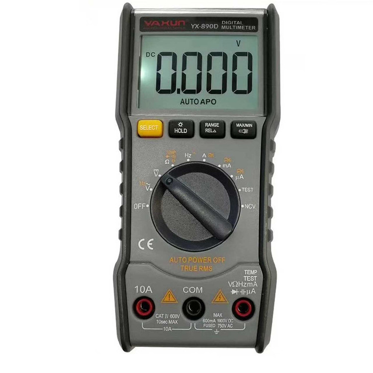 مولتی متر دیجیتال اتورنج سلکتوری AC،DC یاکسون مدل YX-890D جزء یکی از کاربردی ترین و اصلی ترین تجهیزات دقیق تست و اندازه گیری جهت تعمیرات، تولید و راه اندازی در آموزشگاه ها، آزمایشگاه ها، صنایع، کارخانجات، کارگاه های تولیدی و تعمیرگاه های برق و الکترونیک محسوب میشود و از طریق آن میتوان ولتاژ، جریان، مقاومت الکتریکی، ظرفیت خازنی، فرکانس و دما را اندازه گیری نمود.