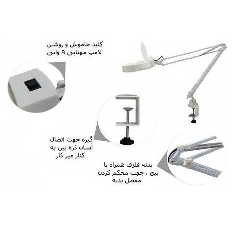 چراغ ذره بین جهت استفاده در کلینیک های پوست، مو، زیبایی، برای نقشه کشی ساختمانی و ... کاربرد دارد با گیره ای که در قسمت پایینی بدنه است به آسانی بر روی میز و جاهای قابل اتصال نصب می شود. ذره بین YX-168 دارای عدسی شیشه ای با قطر 12 سانتی متر و لامپ مهتابی است و همچنین بازوی ذره بین فلزی بلند است که قابلیت مانور بهتر و راحت تر روی میز کار را برای شما فراهم میکند.