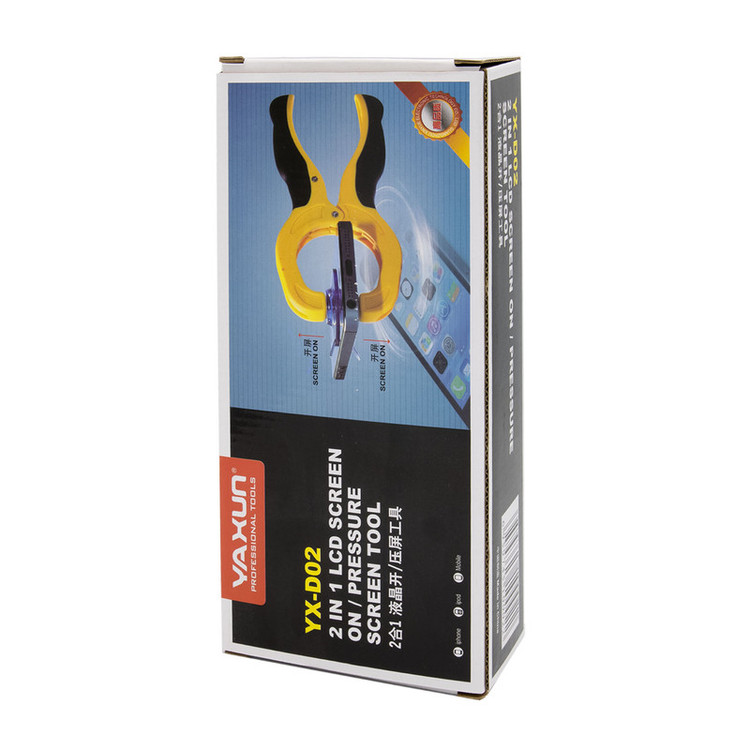 وکیوم ال سی دی یاکسون مدل YX-D02 lpw,gd fsdhv مناسب برای تعمیرات گوشی های موبایل و حتی ال سی دی های کوچک می باشد و از آن برای جداسازی تاچ ال سی دی انواع گوشی های هوشمند و پنل های پخشی و حتی تلویزیون ها می توان استفاده کرد؛ بصورتی که انجام تعمیرات را از طریق ساکشن و نگهداشتن تاچ بسیار ساده می نماید. این تاچ کش انبری دارای دسته ABS با درپوش مکش TPR است و دارای قابلیت گرفتن راحت اجسام با ظرفیت مکش بالا تا 11 کیلوگرم است. جداکردن آسان صفحه نمایش های شیشه ای کار اصلی این محصول است.