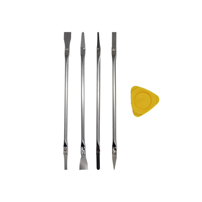 قاب بازکن 5 تکه – در داخل بسته بندی این محصول 4 عدد تیغ دو سر همراه یک عدد پیک قاب بازکن مناسب تعمیرات گوشی موبایل میباشد. جنس تیغ این محصول از استیل ضد زنگ با مقاومت در برابر حرارت است. از قاب بازکن این محصول برای جدا کردن انواع ال سی دی گوشی موبایل و تبلت بوه و جنس آن از پلاستیک مقاوم میباشد.