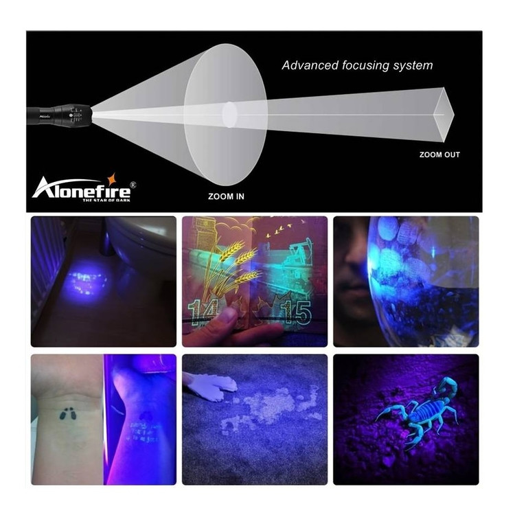 چراغ قوه ال ای دی تشکیل شده از1 لامپ فرابنفش ساخت چین یکی از چراغ قوه های مدل پلیسی، درجه یک و جدید است که با داشتن یک ال ای دی T6 فرابنفش در نوع خود بینظیر است این چراغ متفاوت از همنوعان خود در برندهای مختلف ایرادات و اشکالات همنوعان خود را تا حدی زیادی برطرف کرده و به قدرت تابش و مقاومت بدنه خود افزوده است و دارای نوری فوق العاده قوی بوده