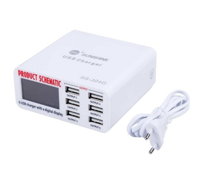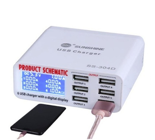 شارژر رومیزی سانشاین 6 پورت و آمپرسنج مدل SUNSHINE SS-304D