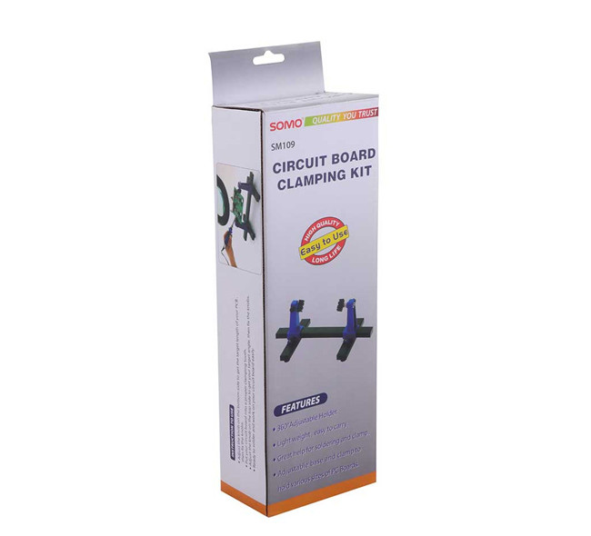 پایه بُرد مدل SM109 تولید شرکت سومو با قابلیت نگهداشتن بُردهای الکترونیکی (ماکسیمم تا 20 سانتی متر) و چرخش گیرهها، یکی از مناسب ترین گیره های مونتاژ موجود در بازار ایران میباشد.
