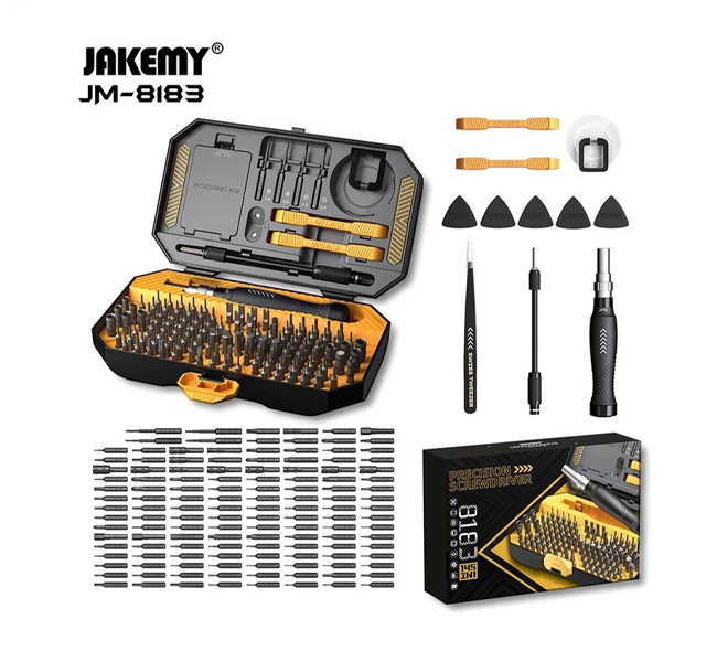 ست پیچ گوشتی 145 عددی JAKEMY JM-8183 یک ابزار حرفهای و کامل برای هر کسی است که به تعمیرات الکترونیکی، تعمیرات خانگی یا کارهای دقیق نیاز دارد.