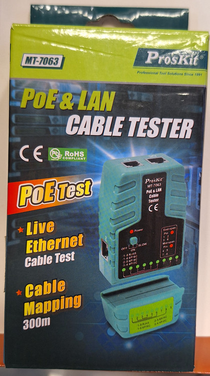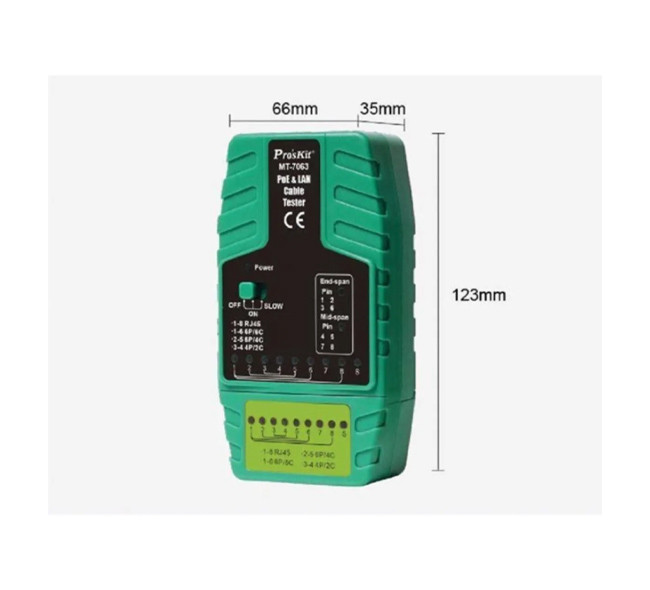 تستر poe به راحتی شبکه اترنت را برای قدرت از طریق اترنت آزمایش می کند. MT-7063 یک نوع پیشرفته است که به راحتی می تواند در استاندارد IEEE 802.3 AF/AT POE و midspan/endspan تعریف شود. تستر کابل rj11/rj12/rj45 پین به پین نقشه کابل بررسی همه آزمایش ها را به صورت خودکار انجام می دهد و تداوم، باز بودن، کوتاه بودن و متقاطع بودن کابل جفت کابل تا 300 متر مشخصات mt-7063 mt-7064 max را بررسی می کند.