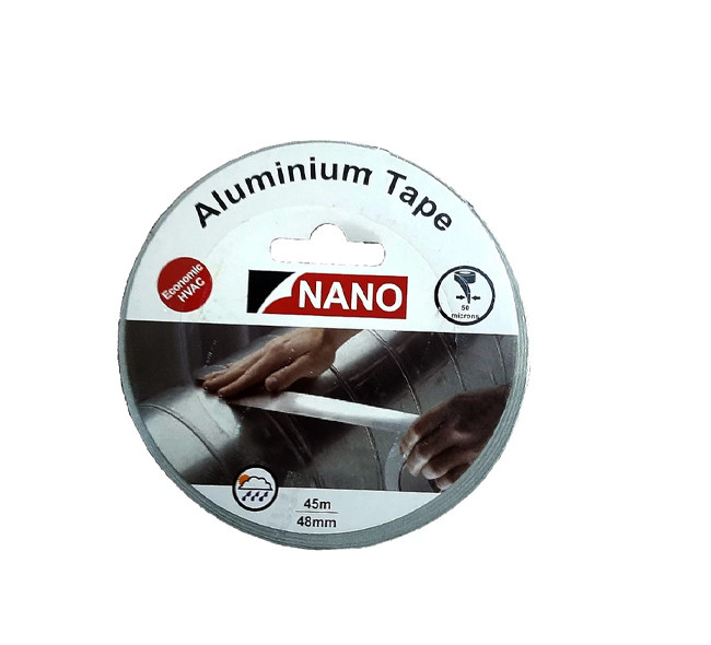 چسب آلومینوم نانو ، چسبی با کیفیت برای درزبندی و ابندی انواع لوله های آلمنیومی و فلزی مناسب می باشد . که مصرف های مختلفی مانند عایق بندی و .... نوار چسب آلومینیومی از فویل آلومینیوم و یک پوشش آستری تشکیل شده که باعث مقاوم شدن آن می شود. مقاومت نوار چسب نخدار بیشتر از نوع ساده آن می باشد. نوار چسب ساده را می توان به راحتی با دست برش داد اما نوار چسب نخدار باید توسط کاتر یا هر شی تیز دیگر بریده شود. از نوار چسب آلومینیومی برای درزگیری نقطه های اتصال در عایق الاستومری استفاده می شود. یکی از ویژگی های مهم آن چسبندگی زیادش است. این ویژگی باعث می شود درزهای عایق الاستومری در محل اتصال کاملا به یکدیگر بچسبند و رطوبت، آب باران، برف به آن نفوذ نکند. هم چنین از فرسودگی به خاطر حرارت و نور آفتاب جلوگیری می شود. از نوار چسب آلومینیومی برای درزگیری و پوشش اتصال های فایبرگلاس و پشم سنگ نیز استفاده می شود. به دلیل مقاومت زیاد و آلومینیومی بودن نوار چسب آلومینیومی می توان برای هوابندی رابط های اتصالی کانال های خرطومی و فلکسیبل از آن استفاده کرد.