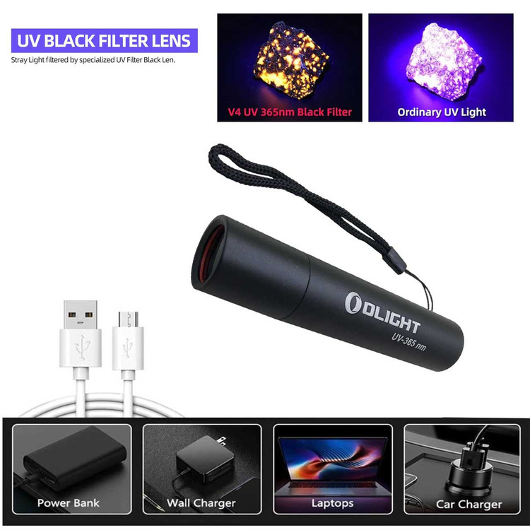 چراغ قوه یو وی ۳۶۵ نانومتر برند آمریکائی اولایت OLIGHT مخصوص شناسائی گوهر،جواهر و سنگهای قیمتی