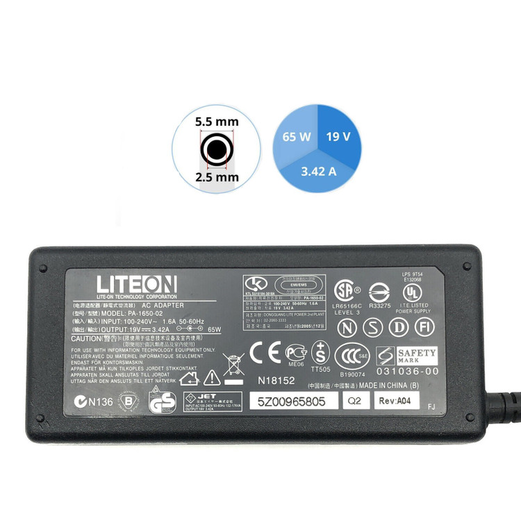 - ولتاژ 19 ولت و جریان 3.42 آمپر (3420 میلی آمپر) ماکزیمم و توان 65W