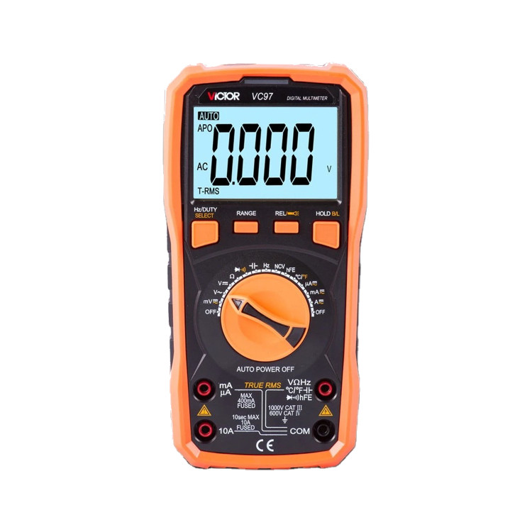 مولتی متر دیجیتال Victor مدل VCl97 یکی از پرکاربردترین ابزارهای اندازهگیری الکتریکی است که میتوان با آن انواع پارامترهای الکتریکی مانند ولتاژ DC و AC، جریان، مقاومت، ظرفیت خازن، فرکانس و دما را با دقت بالا اندازهگیری کرد.