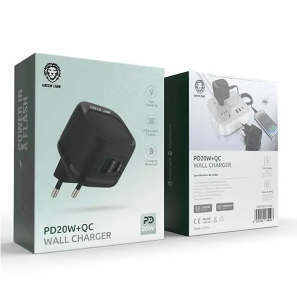 شارژر دیواری گرین لاین مدل Wall Charger EU PD-20W+QC توان 20 وات