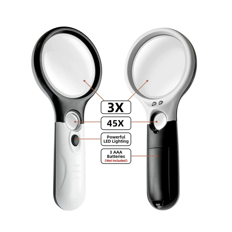 - ذره بین دستی با کیفیت بالا با دو ذره بین با زوم متفاوت 3x و 45x