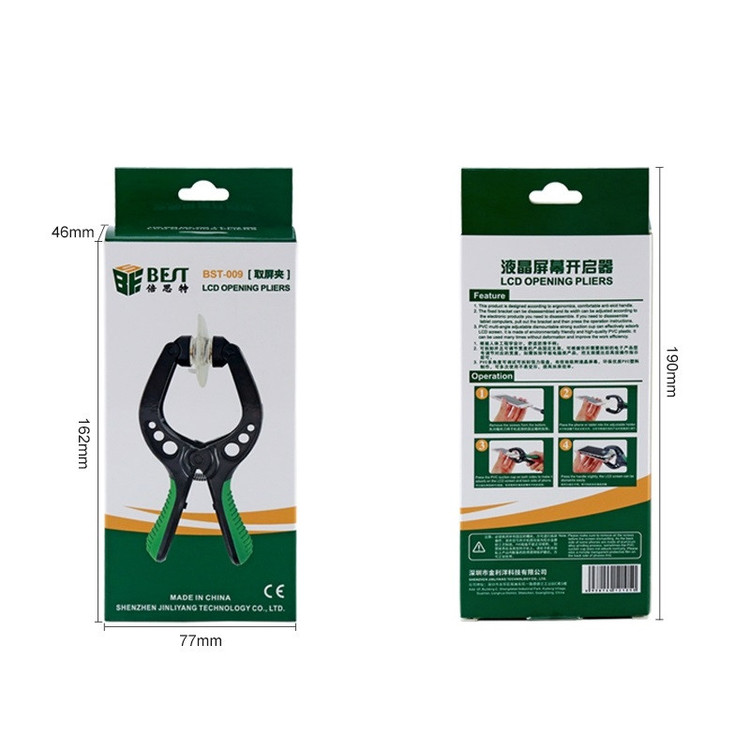 برند بست همواره در ساخت و تهیه لوازم و قطعات الکترونیکی معتبر میباشد . تاچ کش فوق ، به صورت انبری بوده و به راحتی و با چسبندگی راحت ، با اطمینان ال سی دی شما را از بدنه جدا میکند . دو سر مکنده آن متحرک بوده و قابلیت باز شدن تا 2.7 سانتی متر را دارد .