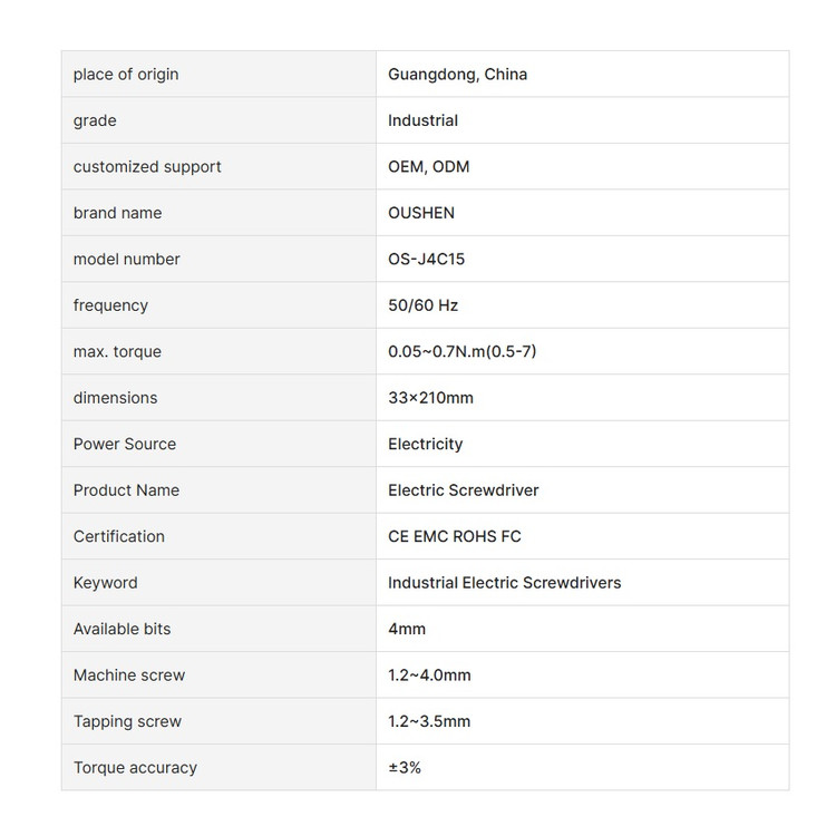 مشخصات فنی پیچ گوشتی برقی مدل OS-JFC۱۵
