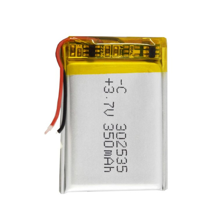 تکنولوژی بر پایه لیتیوم پلیمر سایز و کد ۳۰۲۵۳۵ با چگالی انرژی بالا ولتاژ کاری ۳.۷ ولت ۳.۷۷ و ظرفیت ۳۵۰ میلی آمپر ساعت ۳۵۰mAh کیفیت ساخت بالا و ابعاد ۳.۵۳۵۲۵ میلی متر طول و عرض و ضخامت طول عمر بالا با سیکل و مدار شارژ مناسب برای لوازم و تجهیزات الکترونیک